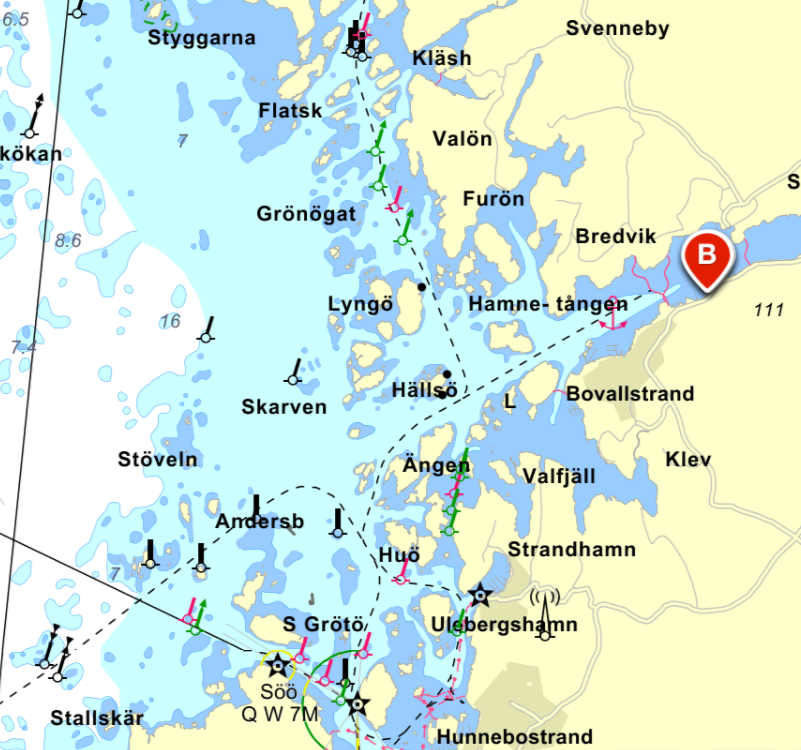 Bovallskajaks utgångspunkt (B) ligger mitt i en av Bohusläns vackraste delar av skärgården. Efter bara några minuters paddling i den vackra bottnafjorden kommer ni ut mot bohusgranitklipporna med gömda vackra sandstränder perfekta för ett stopp. Norr ut finner ni det oerhört vackra naturreservatet Valön där ni på många ställen är ensamma om att kunna ta er fram. Paddla så långt ni vill längs med kusten upp mot Hamburgsund, Fjällbacka, Grebbestad osv. eller ner mot Hunnebostrand, Ramsvik, Smögen, Bohus Malmön osv. Men håll er inomskärs.
